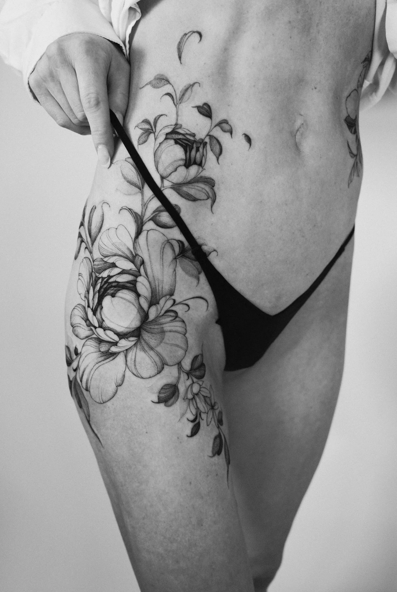 Lorie Santos is a Filipina tattoo artist in Los Angeles specializing in delicate and intricate botanical designs. Her precise and elegant work blends fine art with illustrative black and grey- creating stunning floral pieces on clients who love timeless body art.